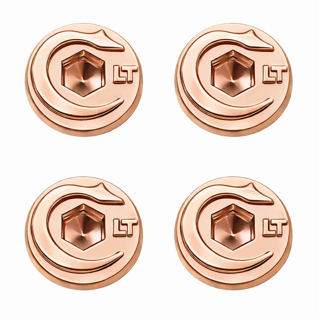 Add a bold, premium accent to your 1911 with this set of polished rose gold grip screws featuring the Colt-style logo in a clean monotone finish. These screws are precision-machined from hardened steel and finished in a mirror-polished rose gold plating for a striking, high-end appearance.