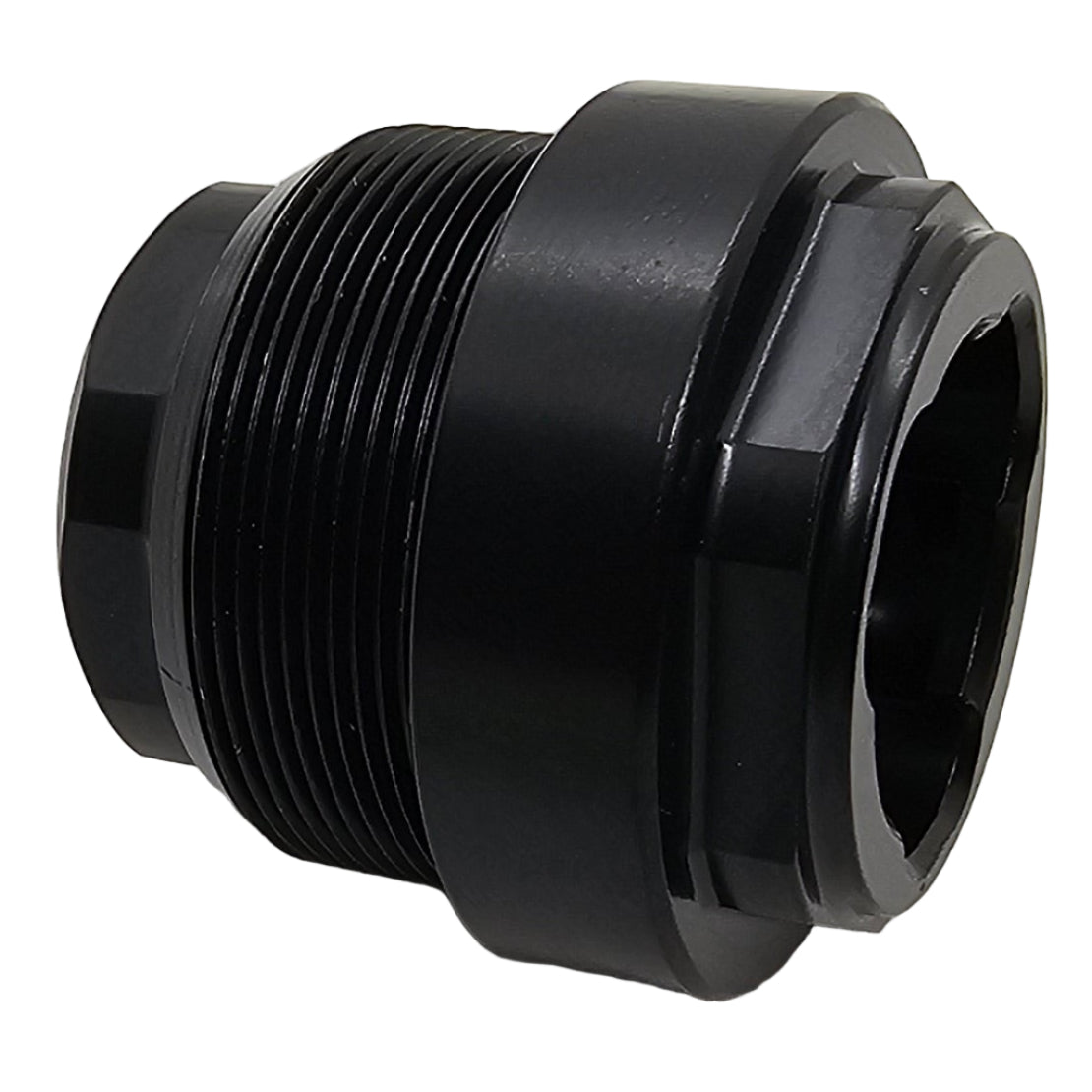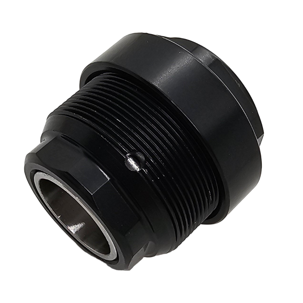The BLACKSPIRAL 3-Lug Mount (.45 ACP) is a fully captured, enclosed mount engineered to work with linear comp systems. Machined from 4140 steel and finished with QPQ Black Nitride, this mount offers excellent wear properties and long service life. The 1-1/8″ x 28 TPI thread size is commonly used with many .45 silencers. Installation is simple using the 1-1/4″ hex flats. Added length: 0.54″. Outside diameter: 1.285″.