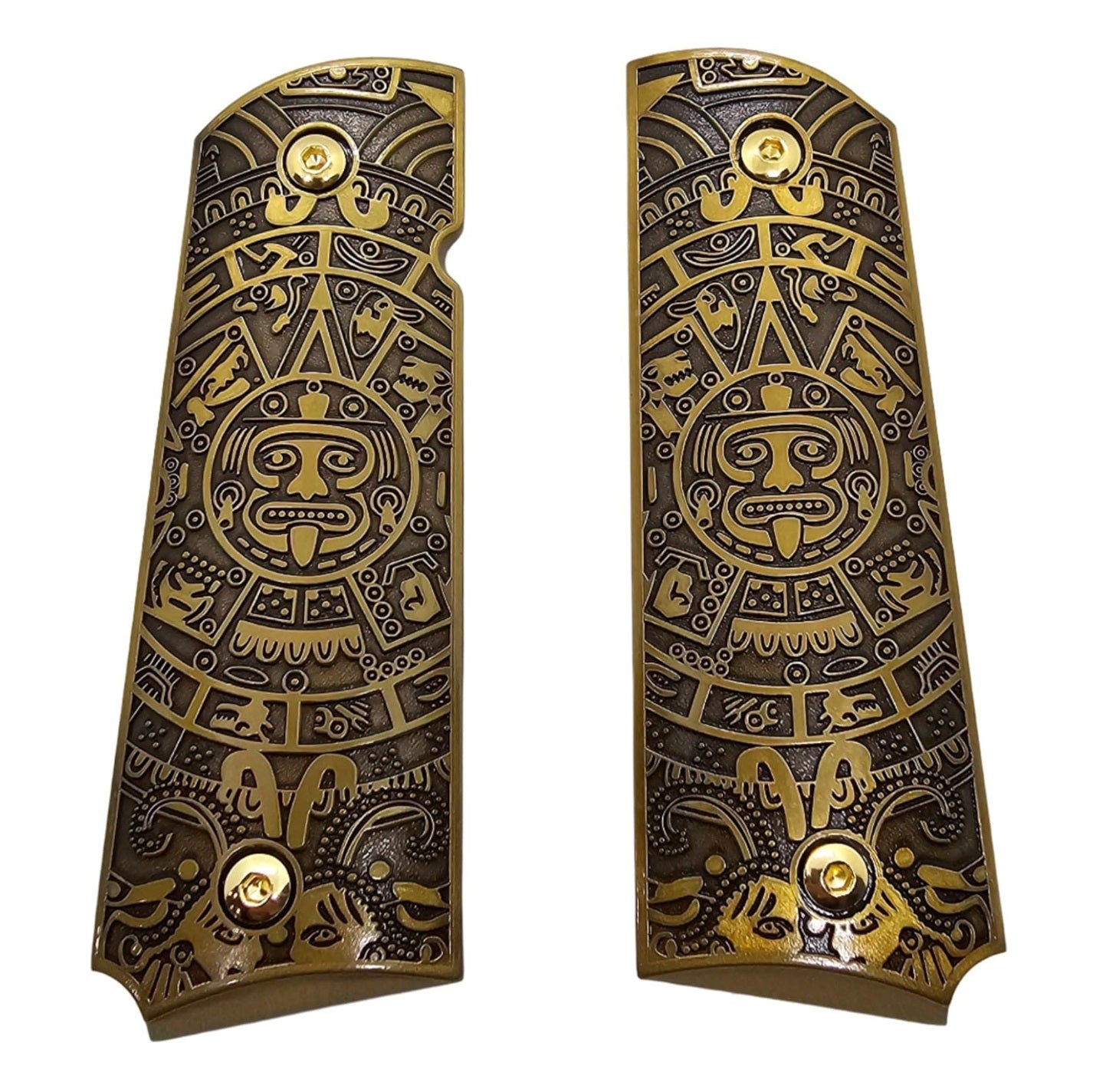 Upgrade your 1911 pistol with these precision-crafted full-size metal grips featuring an intricate Aztec calendar engraving. Designed for both style and performance, these grips offer a perfect fit for all standard full-size 1911 models. The detailed etching provides a secure, textured surface while giving your firearm a unique, eye-catching look.