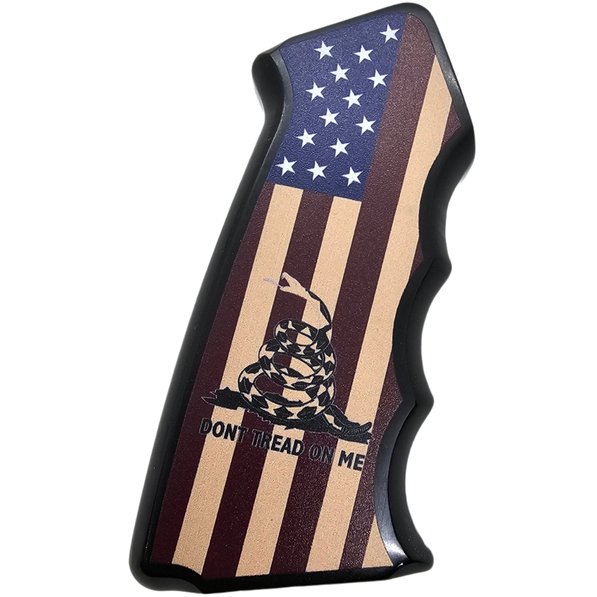 • AR-15/M4 Aluminum Pistol Grip – “Don’t Tread On Me” American Flag Design