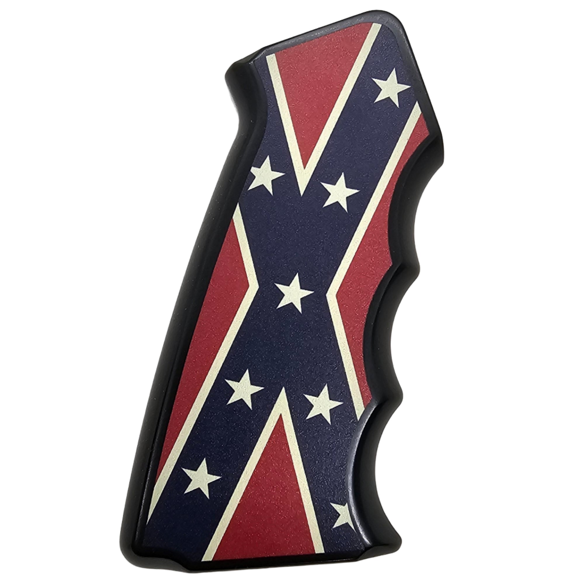 Upgrade your AR-15 or M4 build with this CNC-machined aluminum pistol grip, finished with a bold red, blue, and white cross pattern with star accents. Designed for both style and durability, this grip combines a custom look with solid performance.