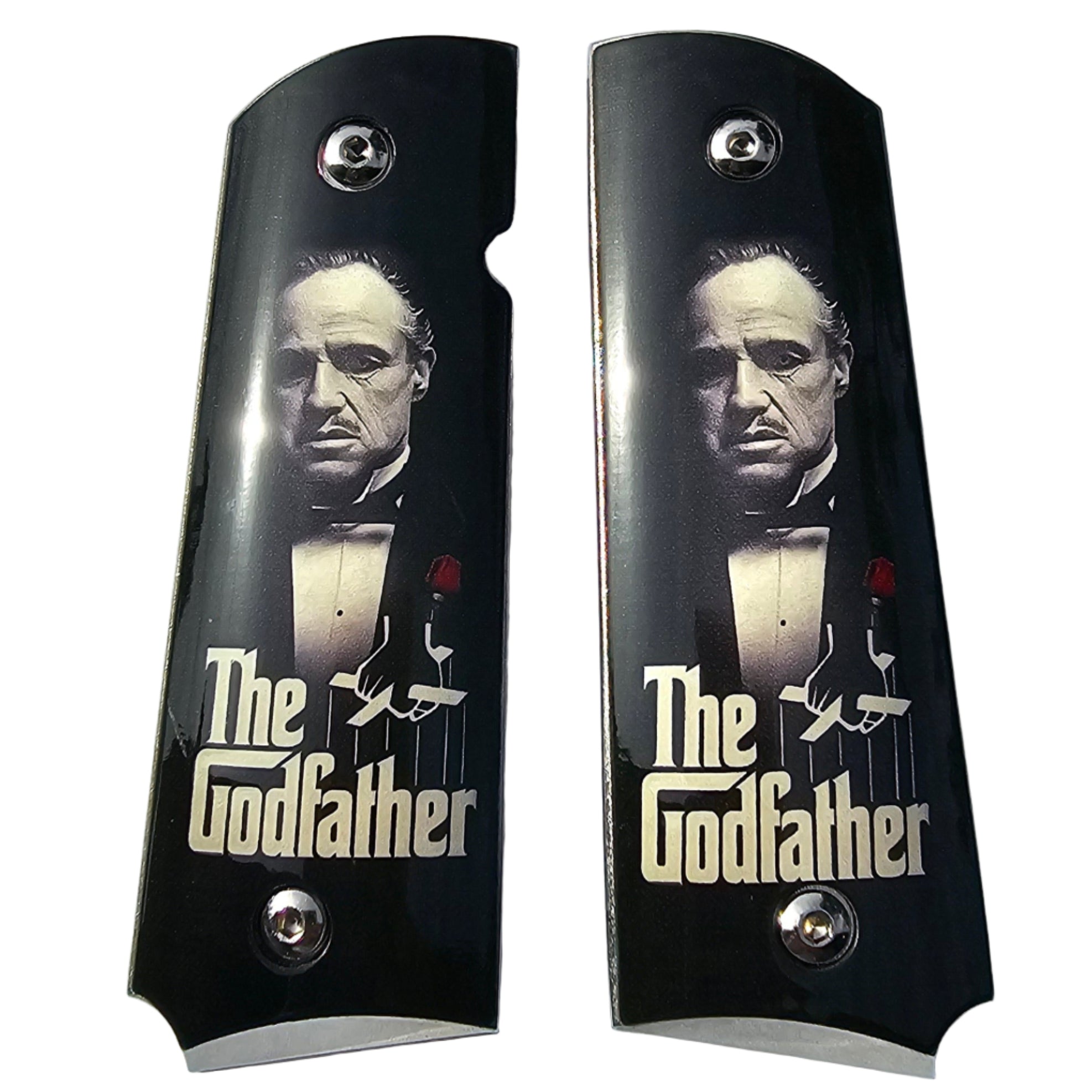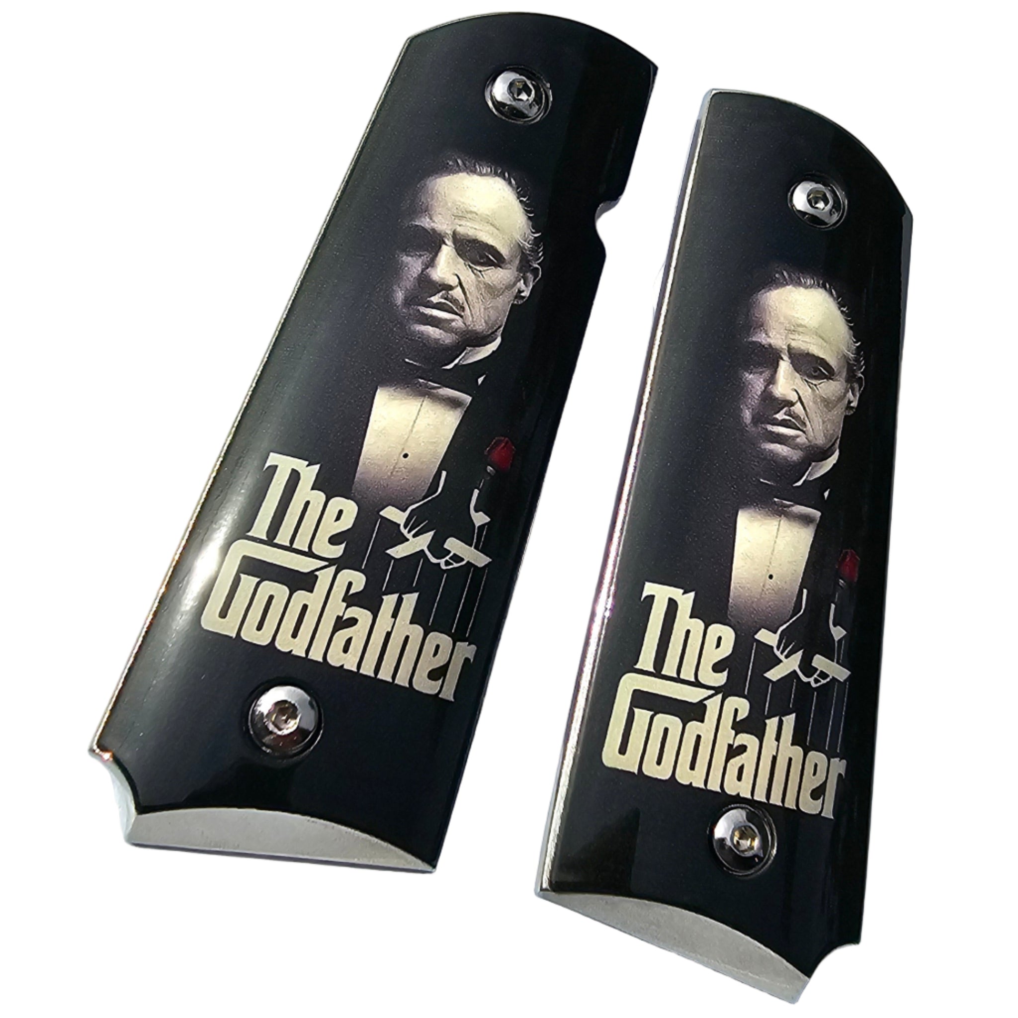 The grips showcase a bold The Godfather-inspired design, making them a unique option for fans, collectors, and those who want to customize their 1911 with style. Each set comes with 4 included screws for quick and secure installation.