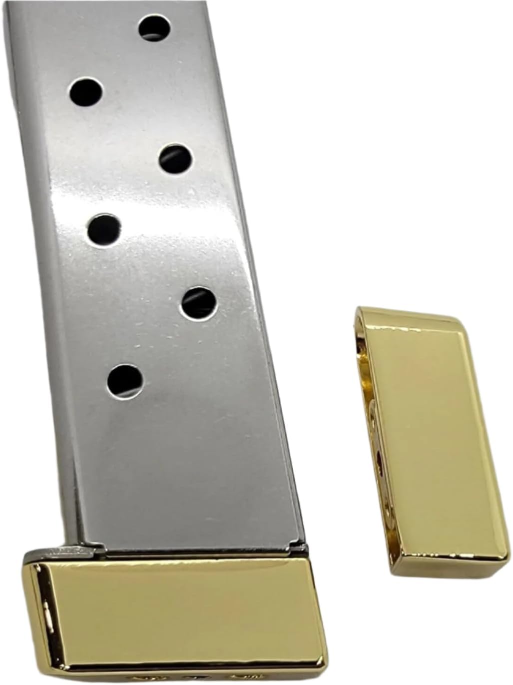 • 2 Γ— Steel Base Pads with Gold Finish (for Kimber Pro Tac-Mag 1911 Full Size .45 ACP 8-Round magazines)