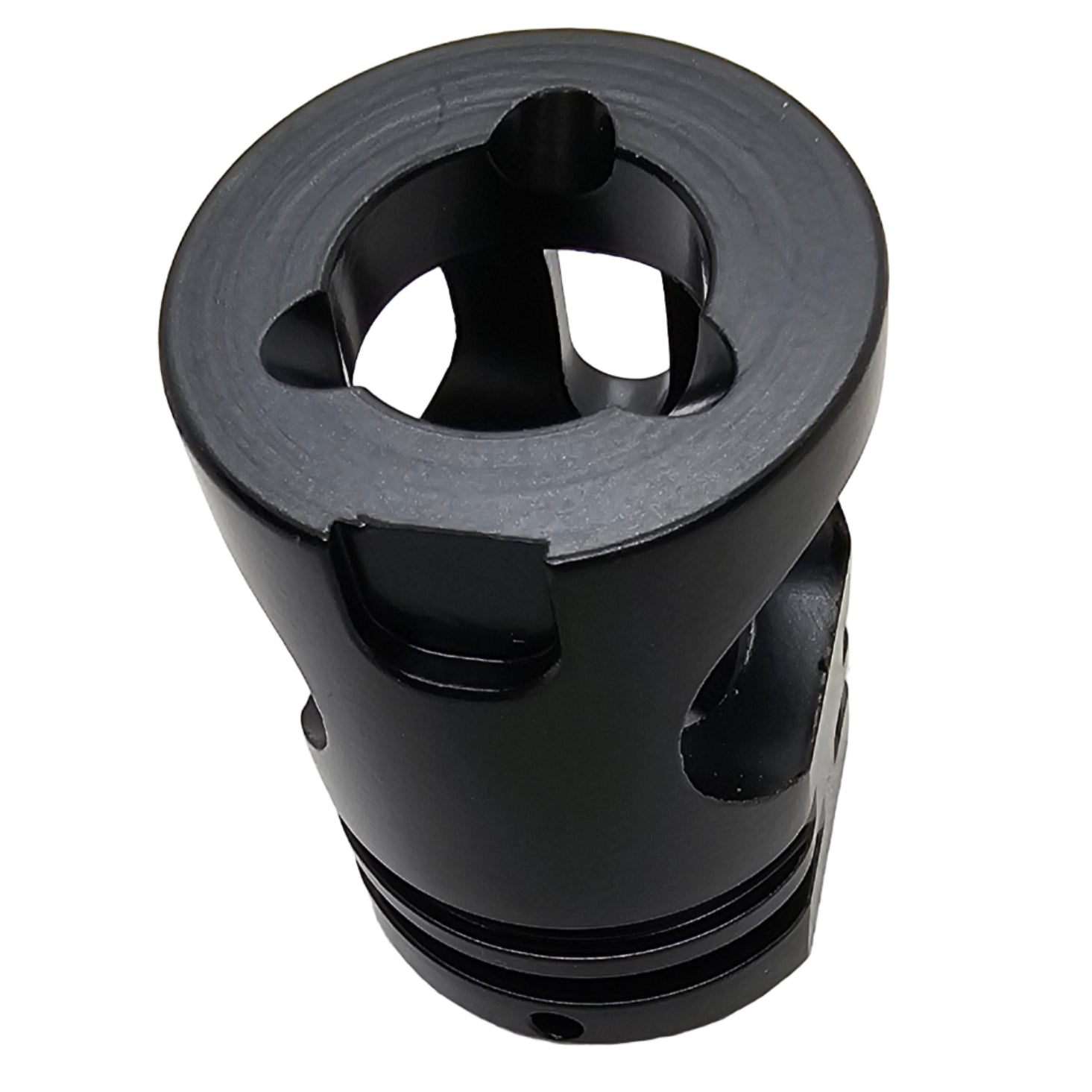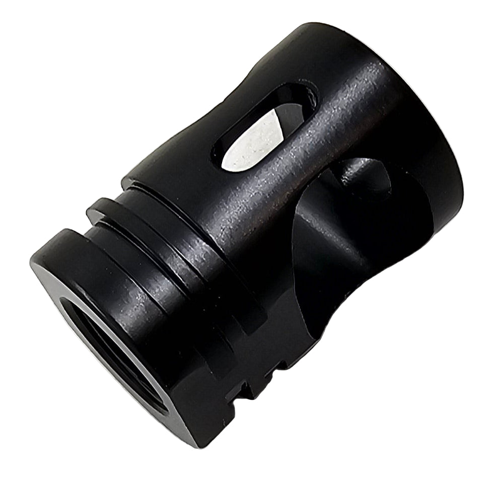 Upgrade your setup with this precision-engineered muzzle brake designed for 1/2x28 threaded barrels. Built from durable steel with a sleek black finish, this compact brake measures 1.25" in length and provides both strength and style. Its ported design enhances performance while maintaining a streamlined profile, making it an excellent choice for a variety of applications.