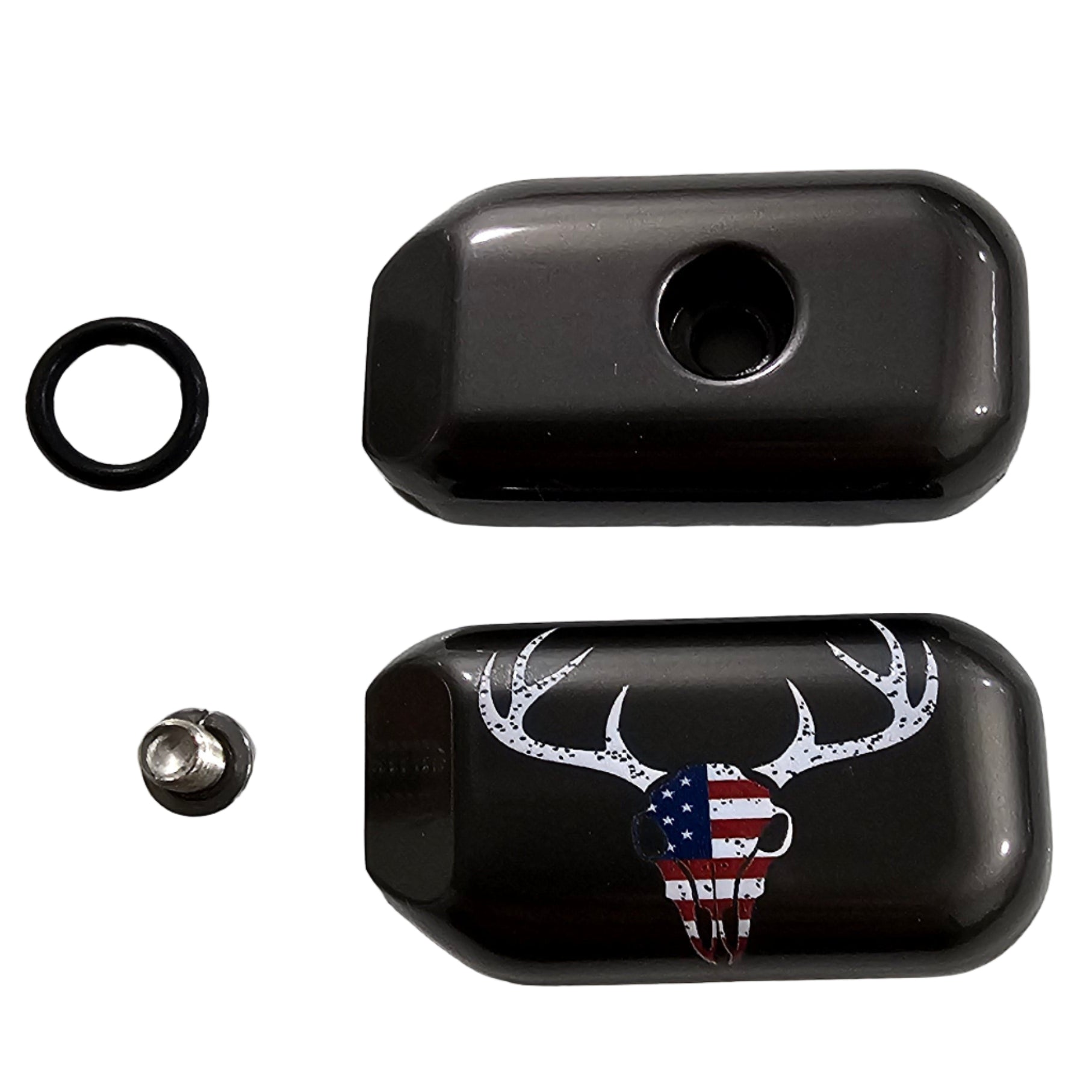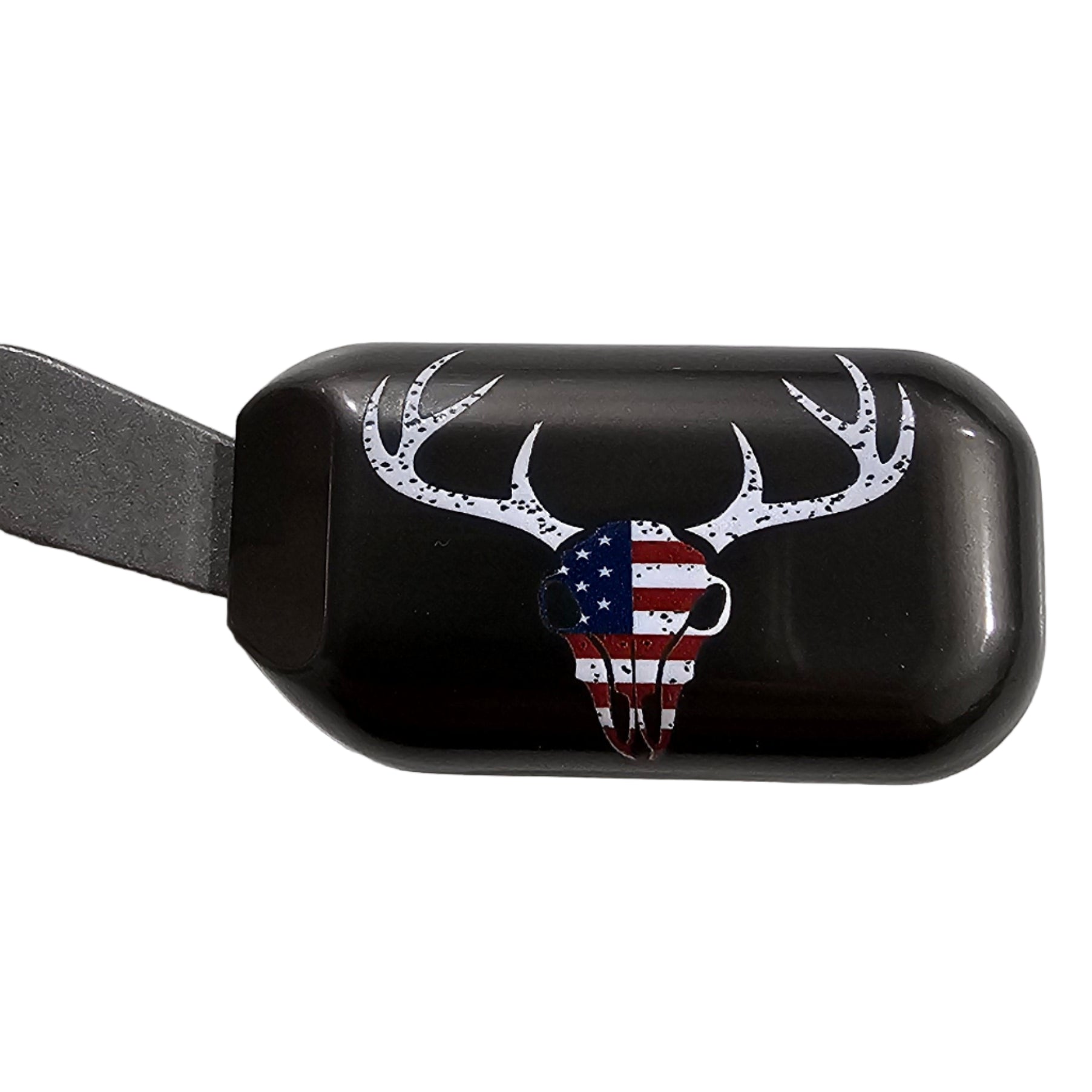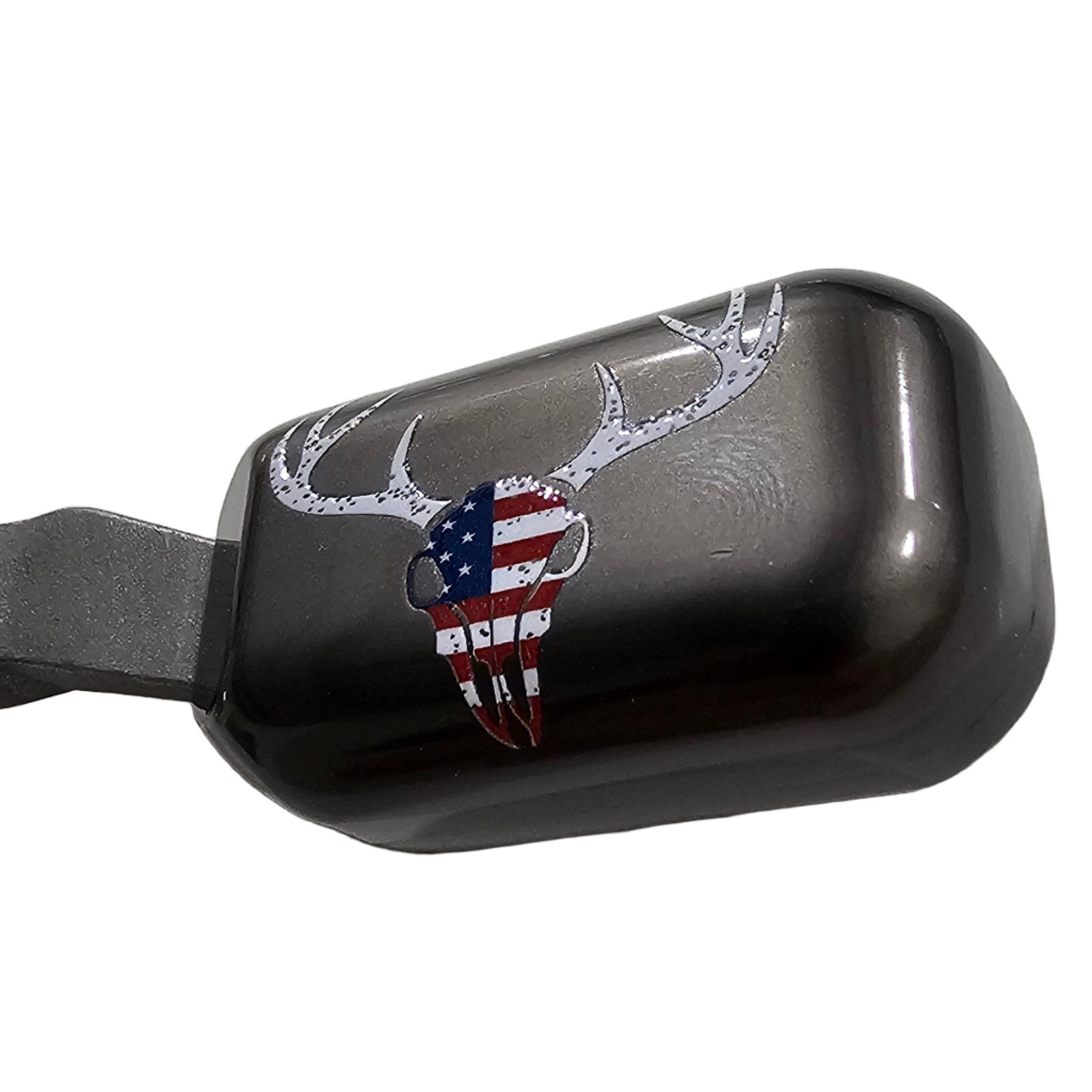 Give your Remington 700 a sleek, patriotic upgrade with this Black Steel Clamp-On Bolt Knob Extension featuring a distressed American Flag Deer Skull design. Built from solid hardened steel and coated in a polished black finish, this extension provides smoother bolt cycling, improved grip, and a distinctive hunting-themed look.