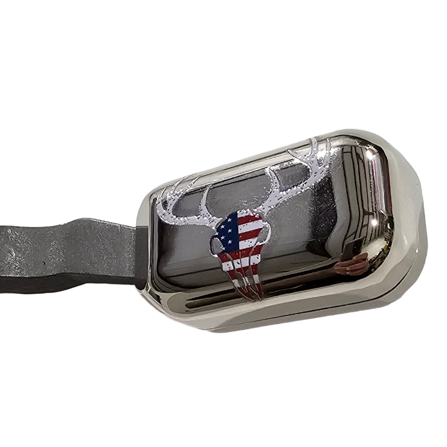 Upgrade your Remington 700 with this premium Chrome Steel Clamp-On Bolt Knob Extension, featuring a bold American Flag Deer Skull graphic. Built from hardened steel, polished to a mirror-chrome shine, and designed for zero-slip bolt control—this extension combines performance, durability, and patriotic style.