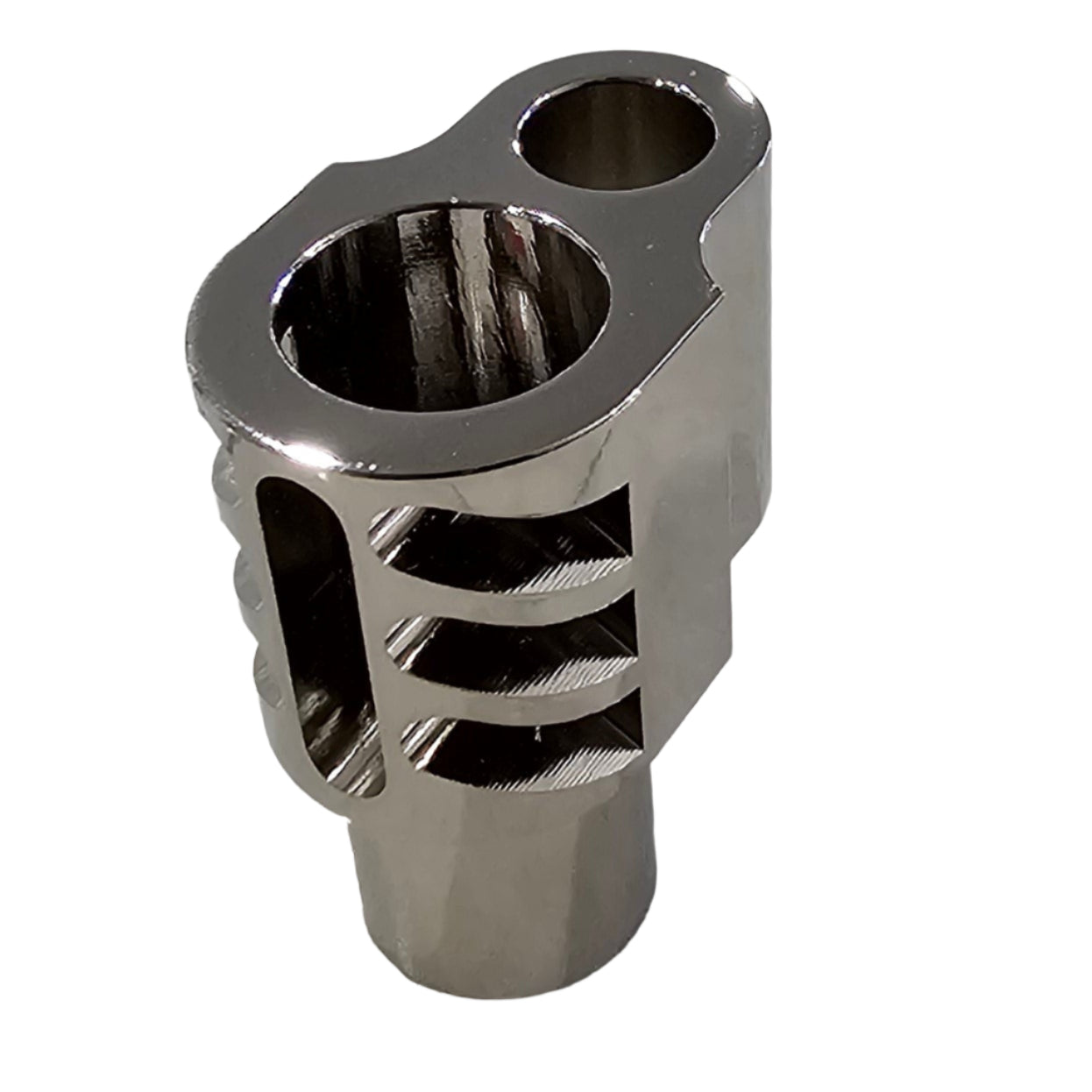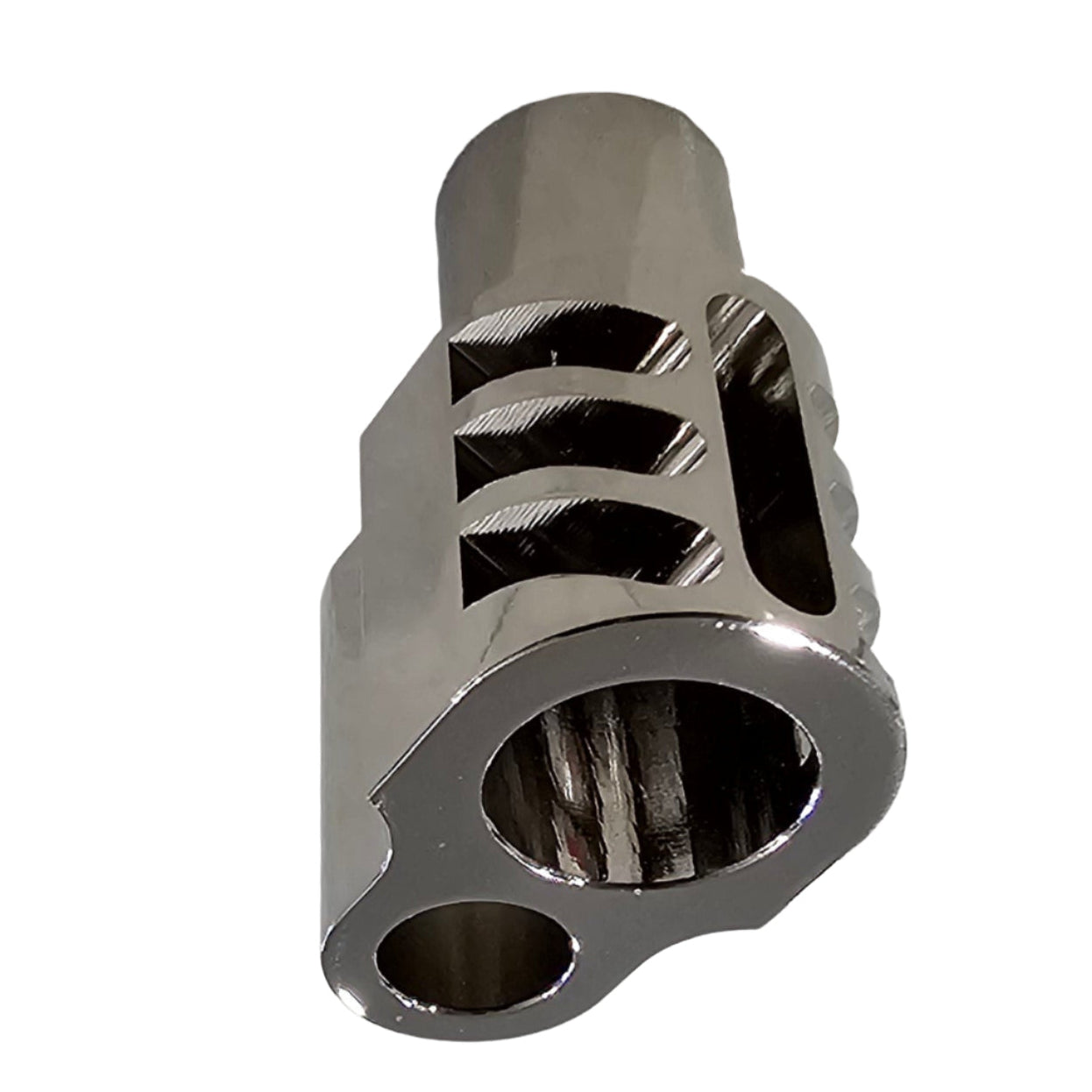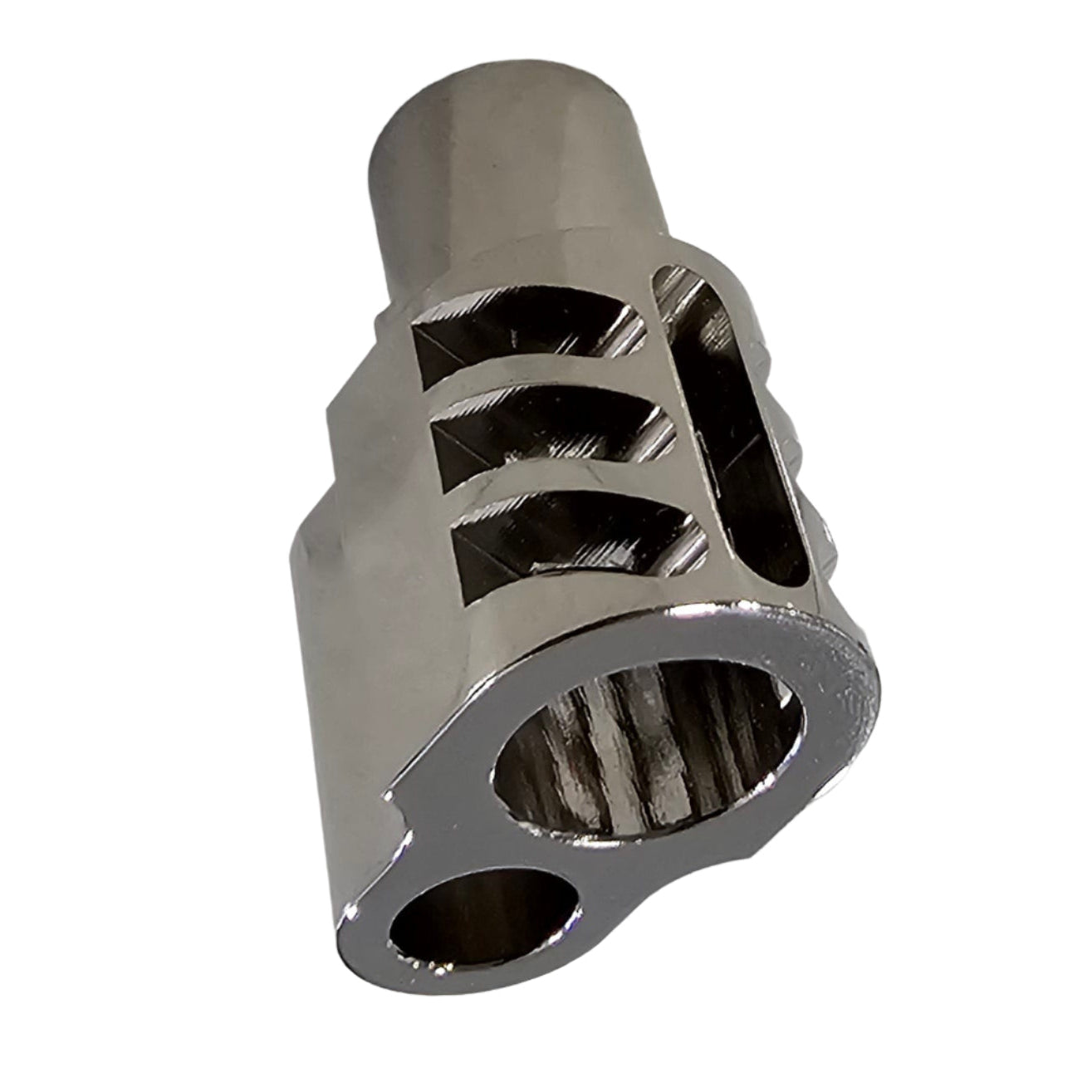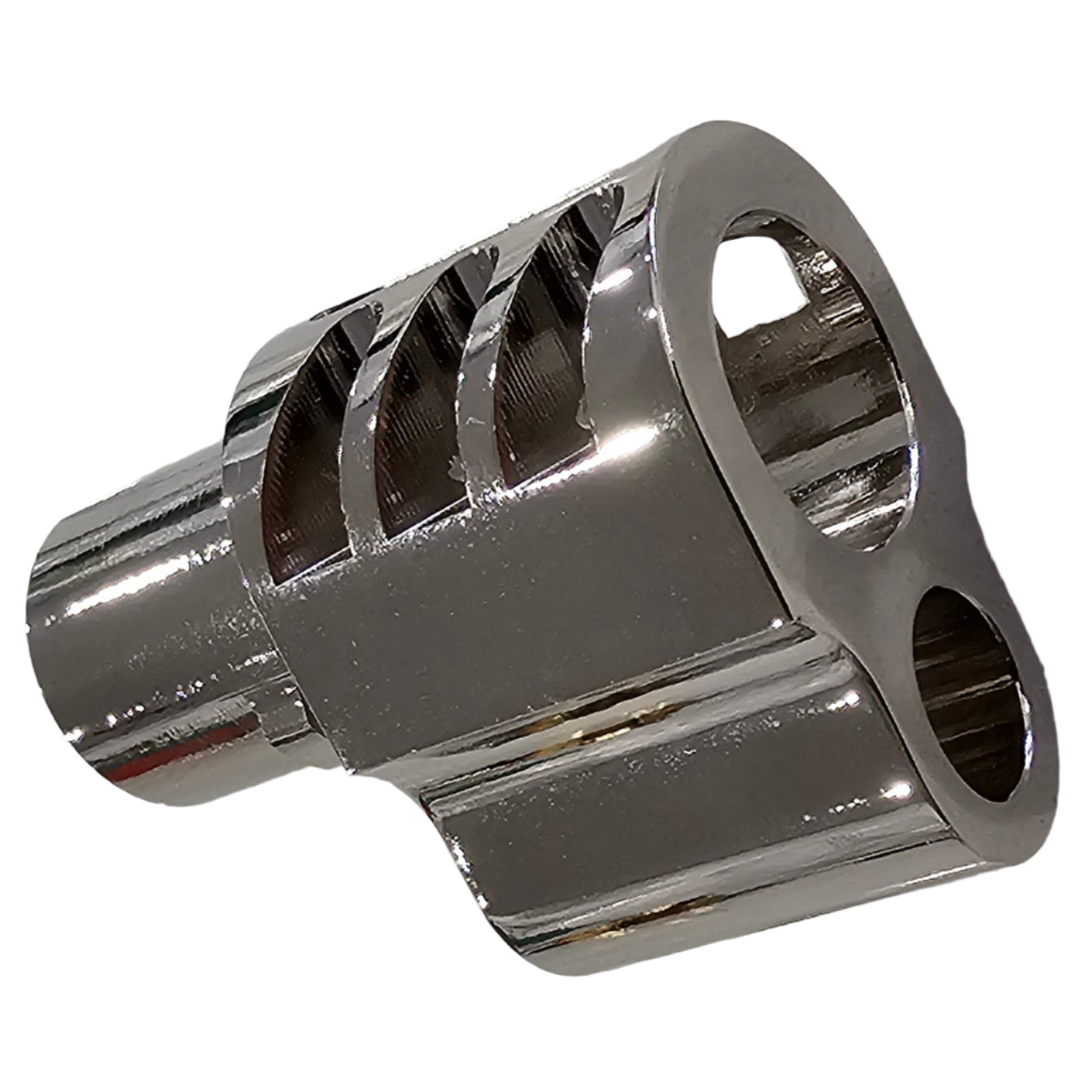 Upgrade your 1911 with this precision-machined steel compensator, finished in a polished chrome plating for both performance and luxury styling. Designed for .45 ACP full-size 1911 pistols, this compensator helps reduce muzzle rise and adds a custom high-end appearance.
