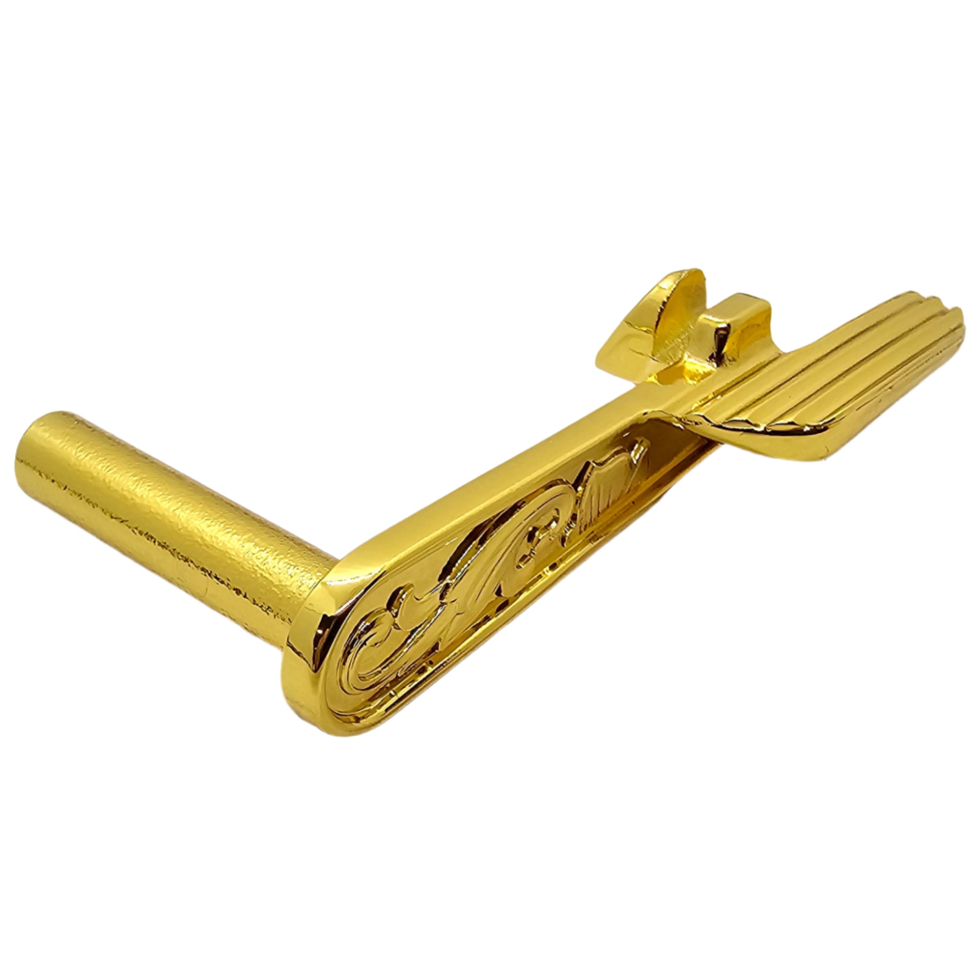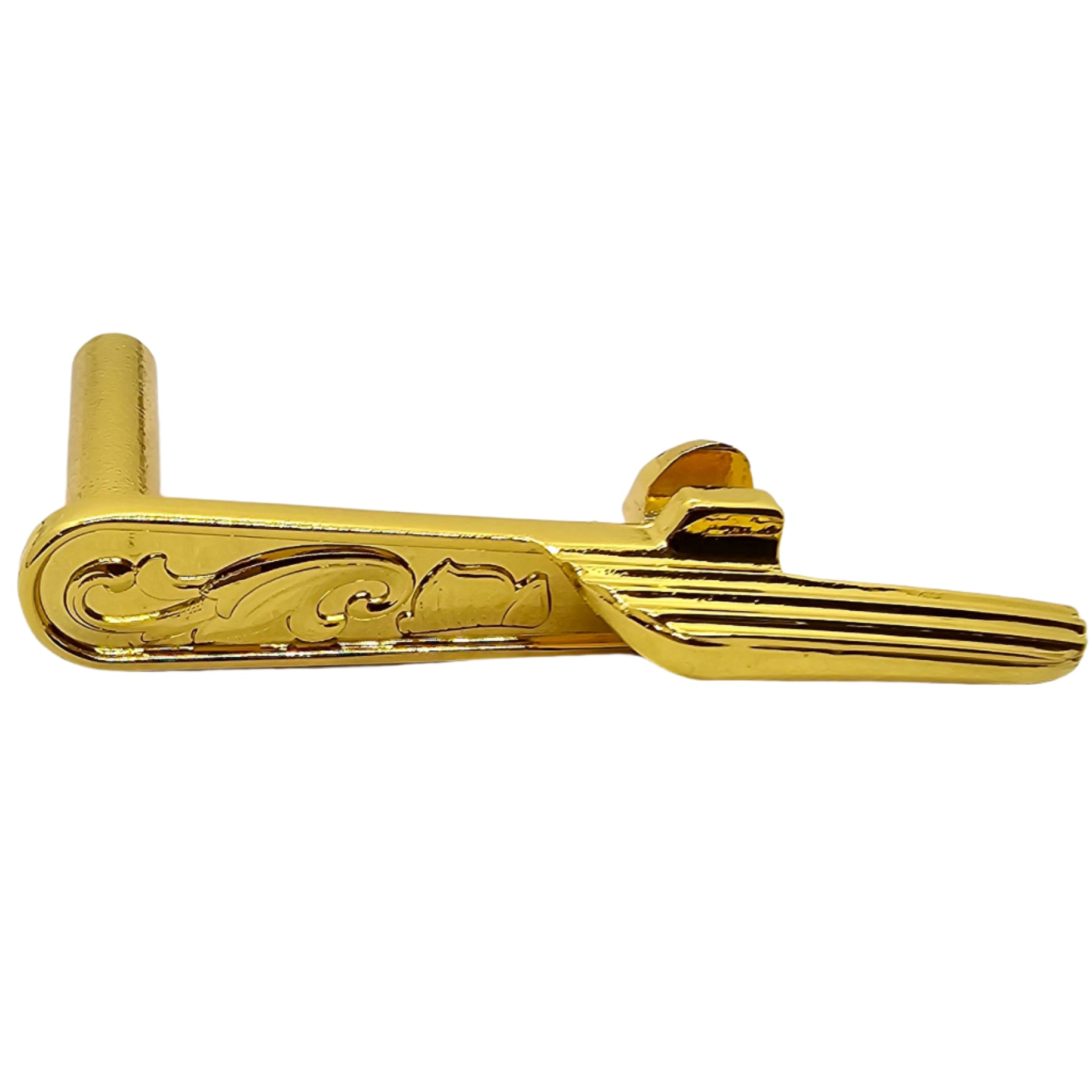 • 1911 Extended Slide Stop – Engraved Steel, Polished Gold Plated, Fits Full-Size & Compact
