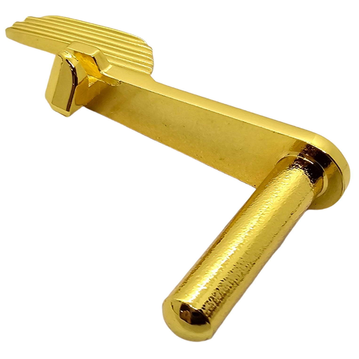 Upgrade your 1911 with this extended slide stop, crafted from durable steel and finished in a polished gold plating. Designed to fit both full-size Government and compact 1911 pistols, this premium part improves function while adding a custom luxury look.