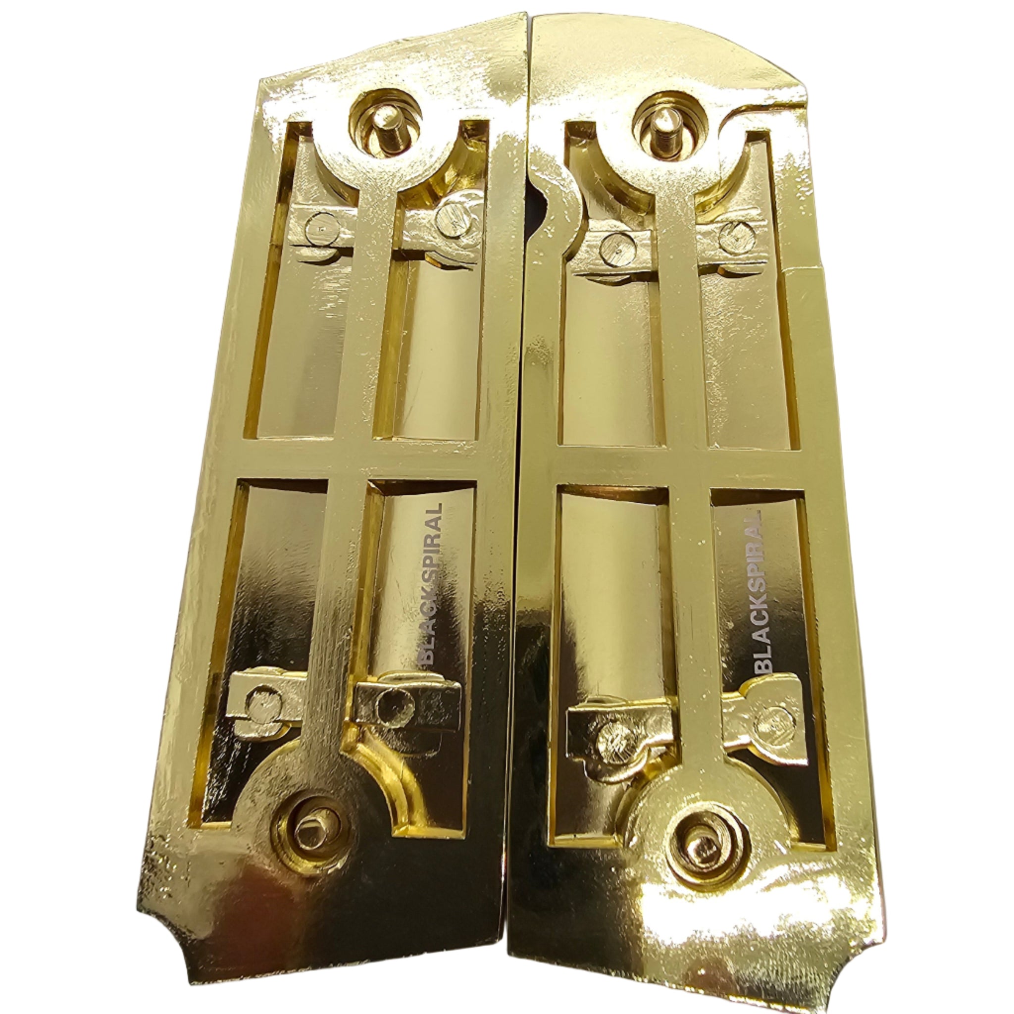Bring a devotional and elegant touch to your 1911 with these premium full-size metal grips, designed on a durable gold-plated base. With an ambi safety cut, they fit Government and Commander frame 1911 models that use ambidextrous safeties.