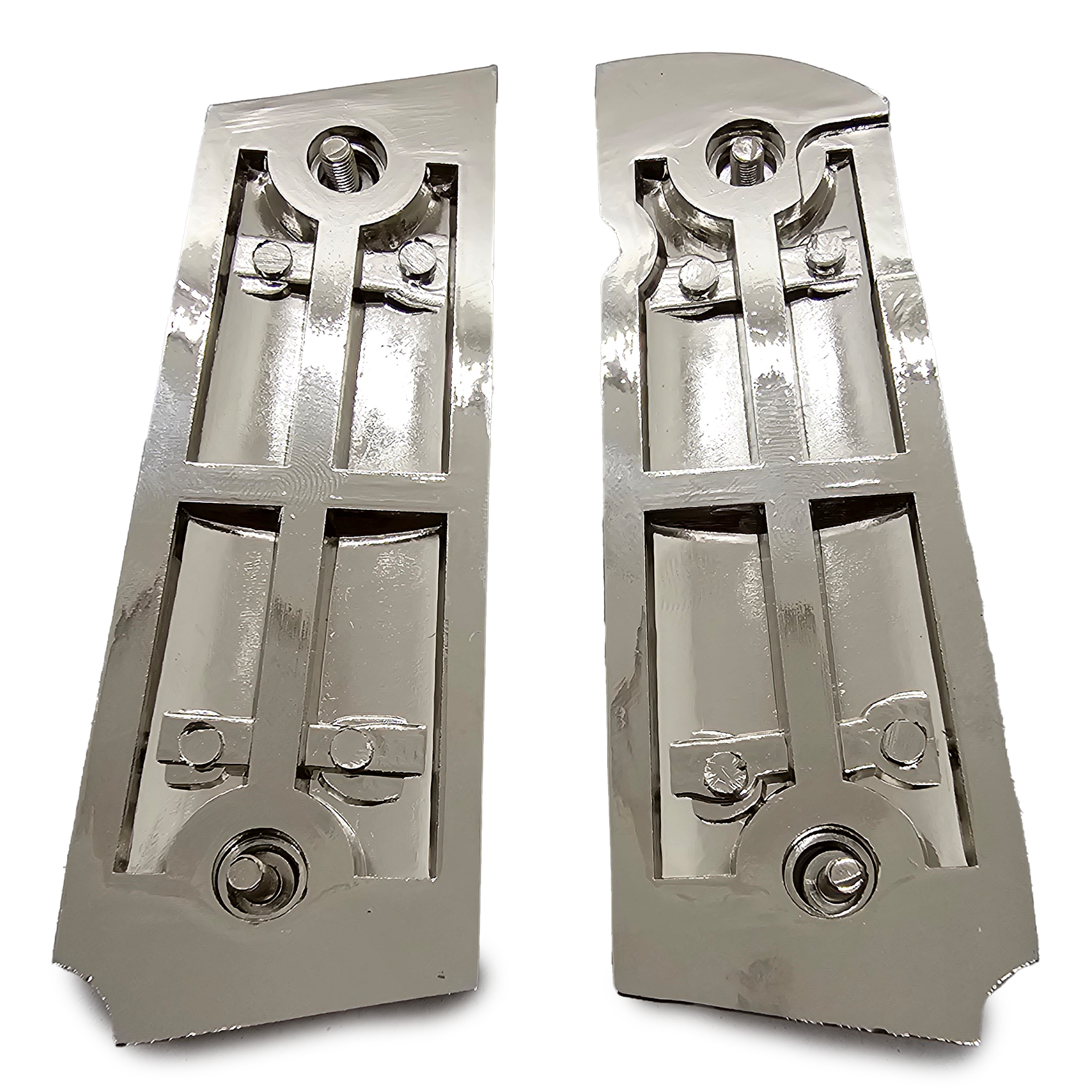 Made from durable metal, these grips are crafted for performance and aesthetics. The set includes ambidextrous safety cuts for compatibility with a wide range of models, and comes with nickel-tone mounting screws to complete the look.