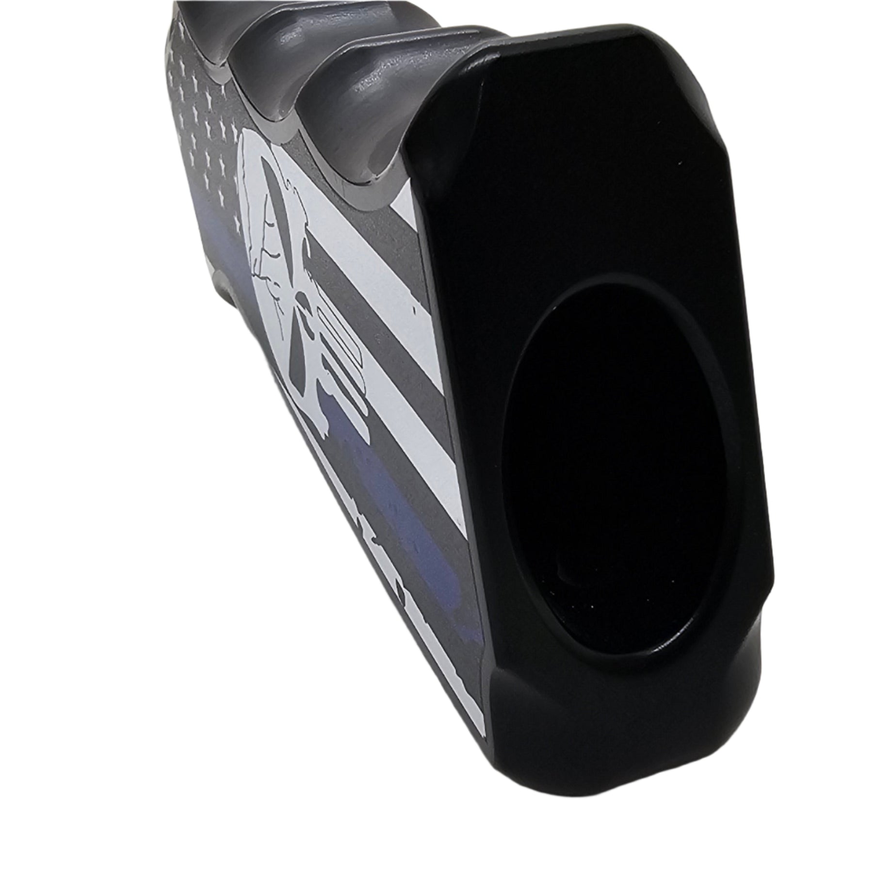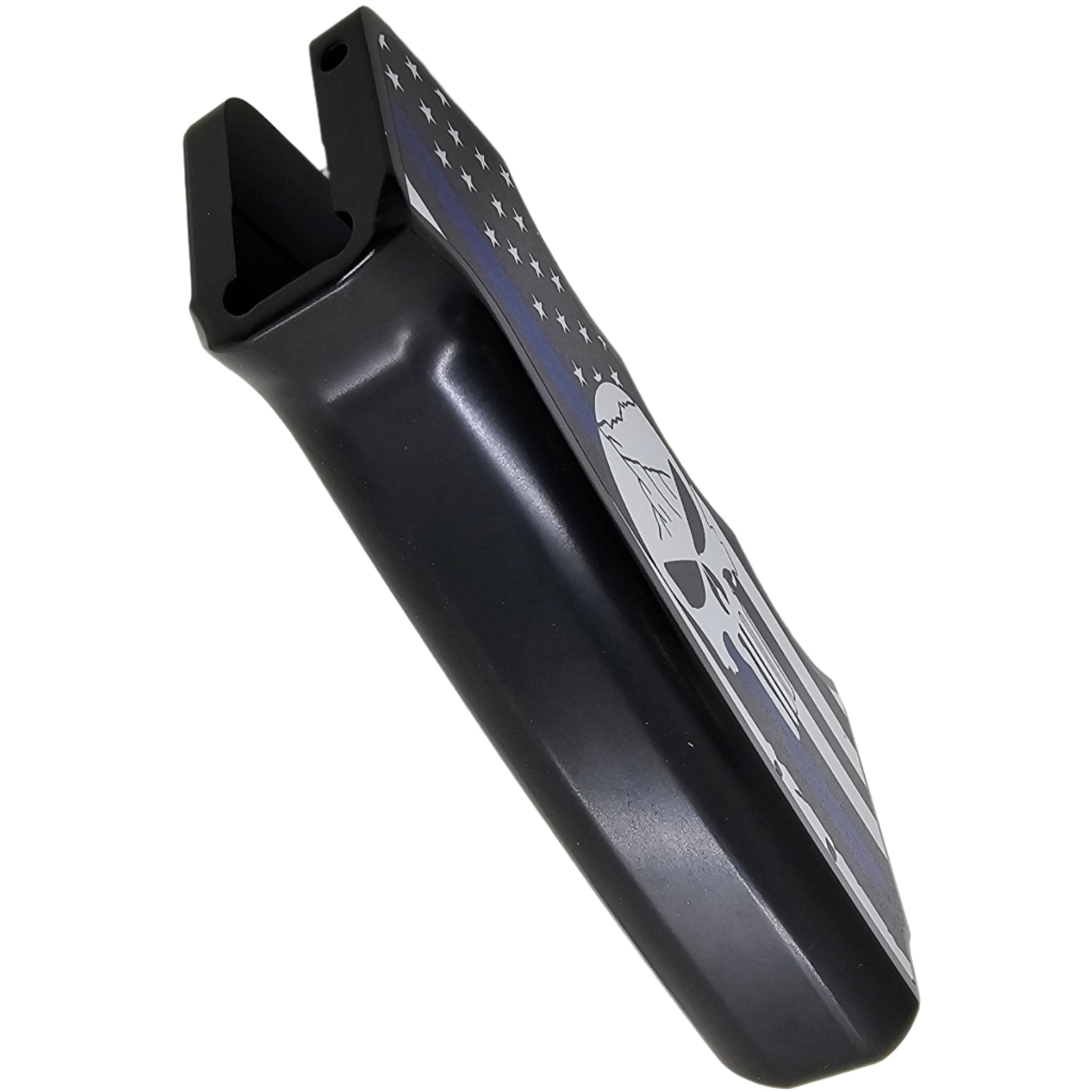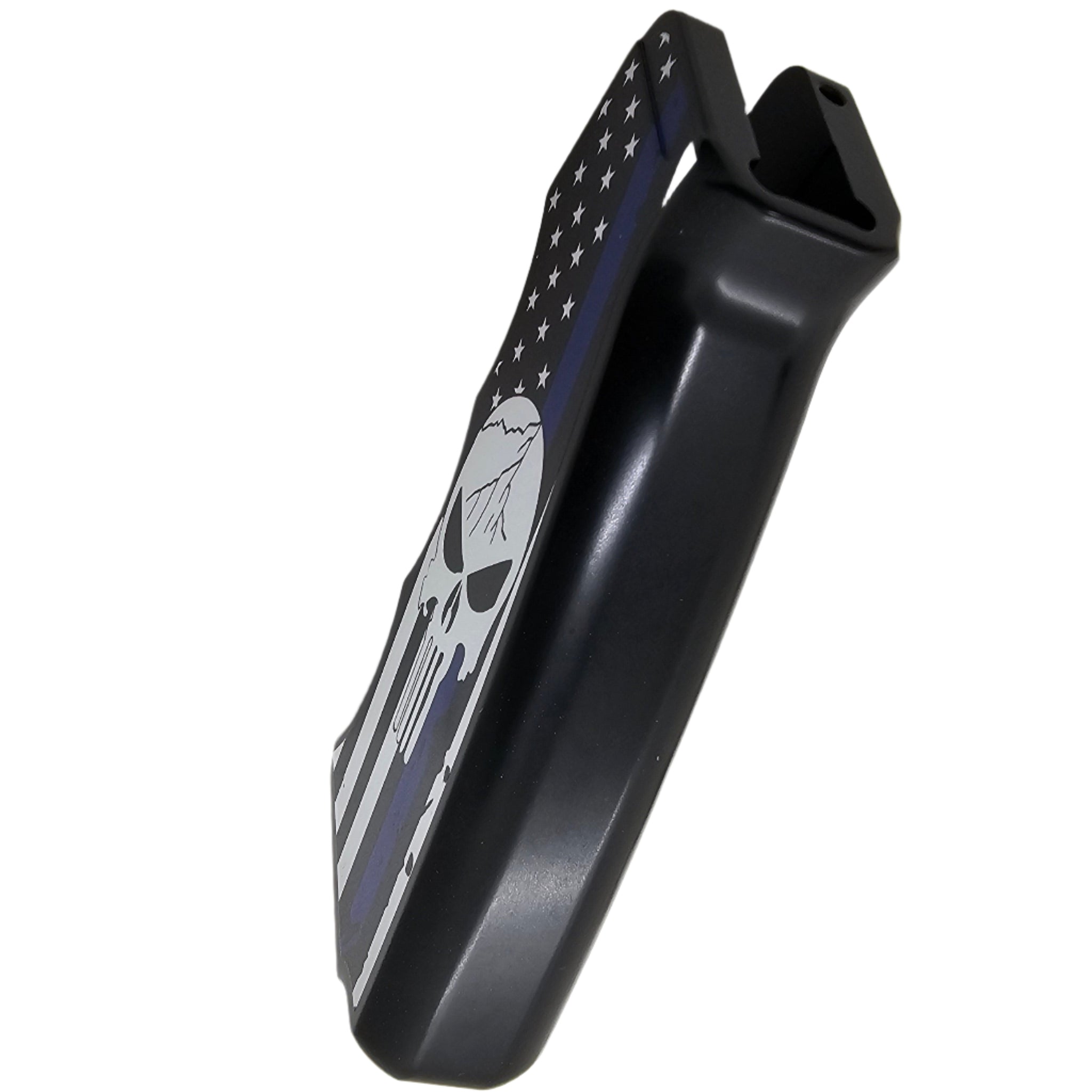Upgrade your AR-15/M4 with this CNC-machined aluminum pistol grip, featuring a bold Thin Blue Line American Flag with a skull design. Built for durability and ergonomics, this grip delivers both high performance and a striking custom look.
