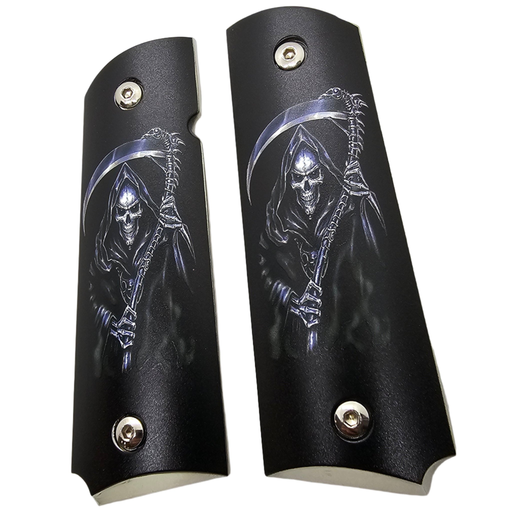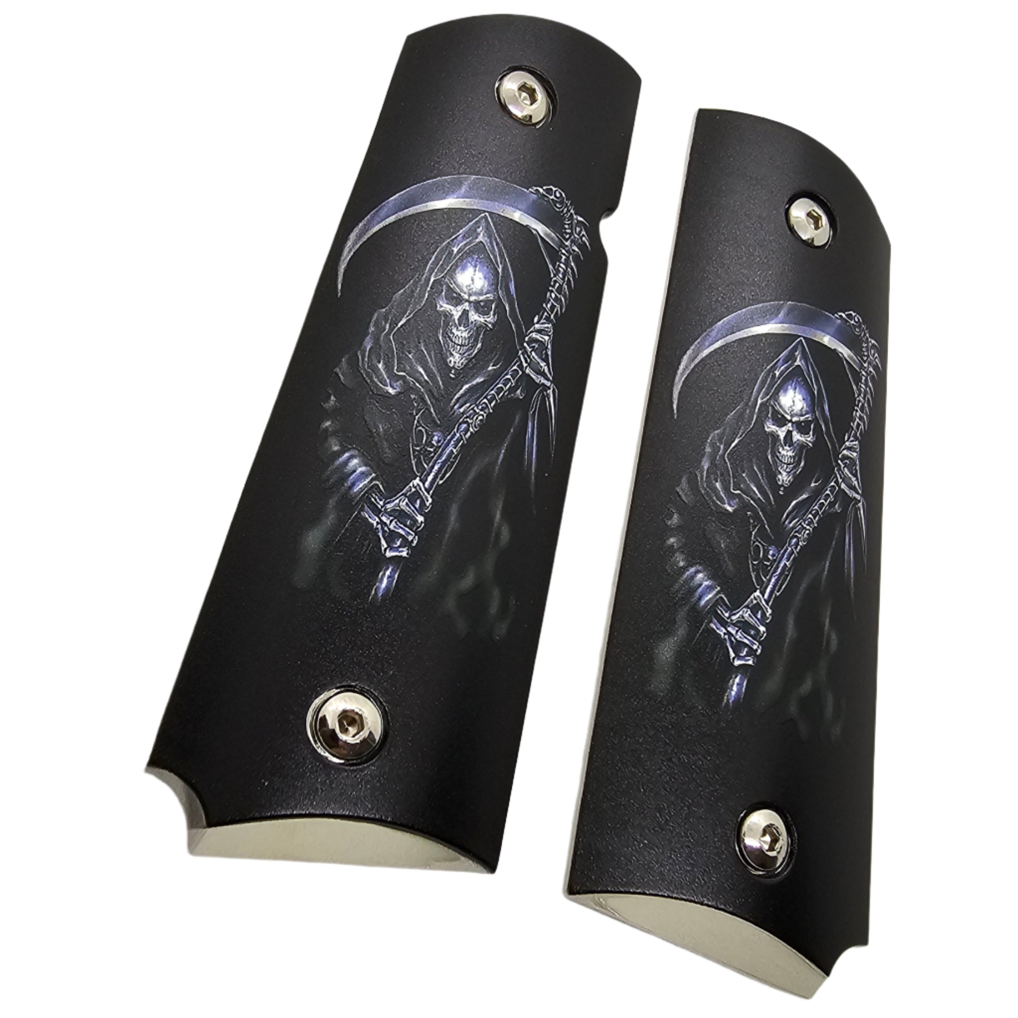 Add bold personality and an intimidating edge to your 1911 with these custom Grim Reaper full-size grips. Crafted for style and performance, these grips feature detailed artwork of the Reaper with a deadly scythe — a perfect match for any warrior’s sidearm.