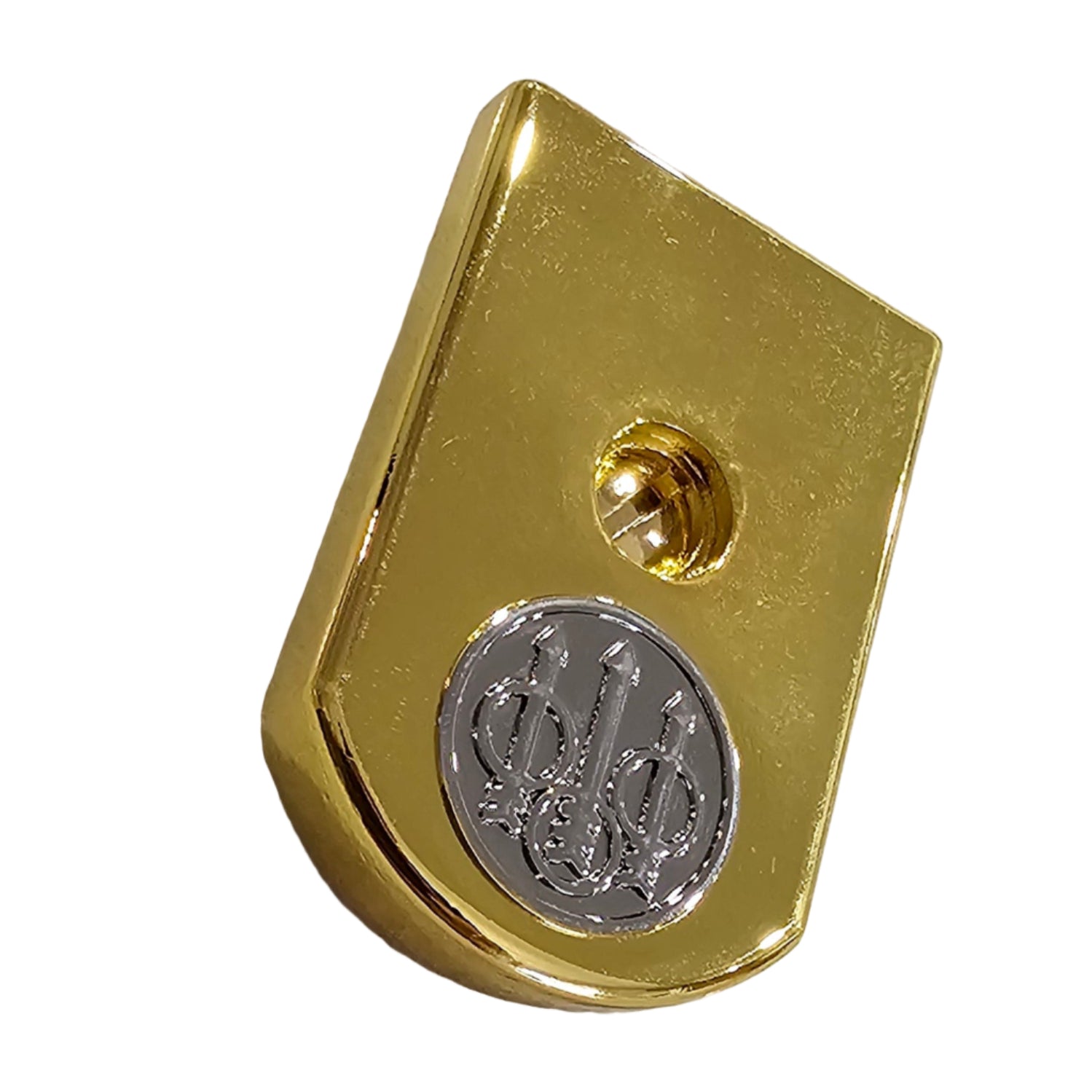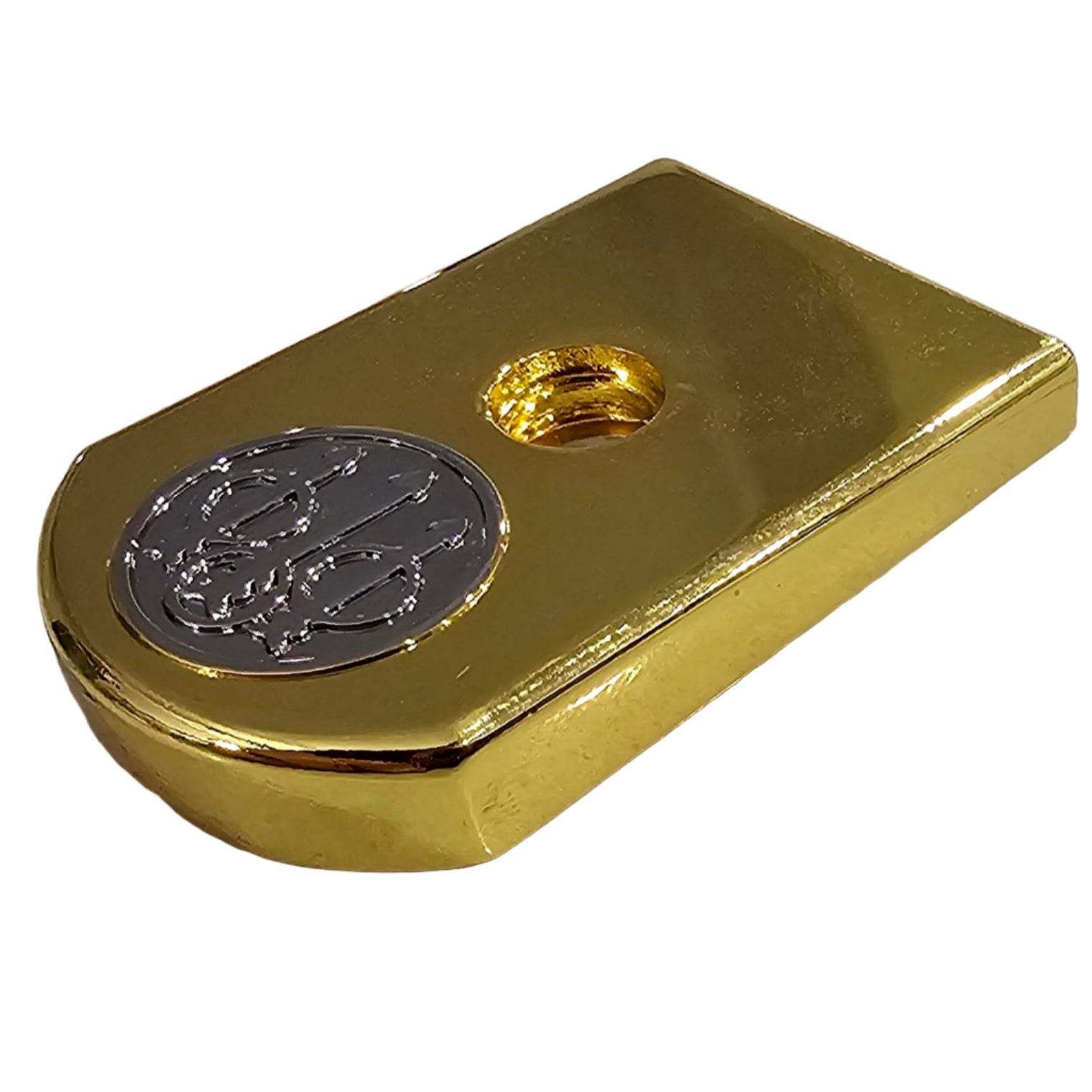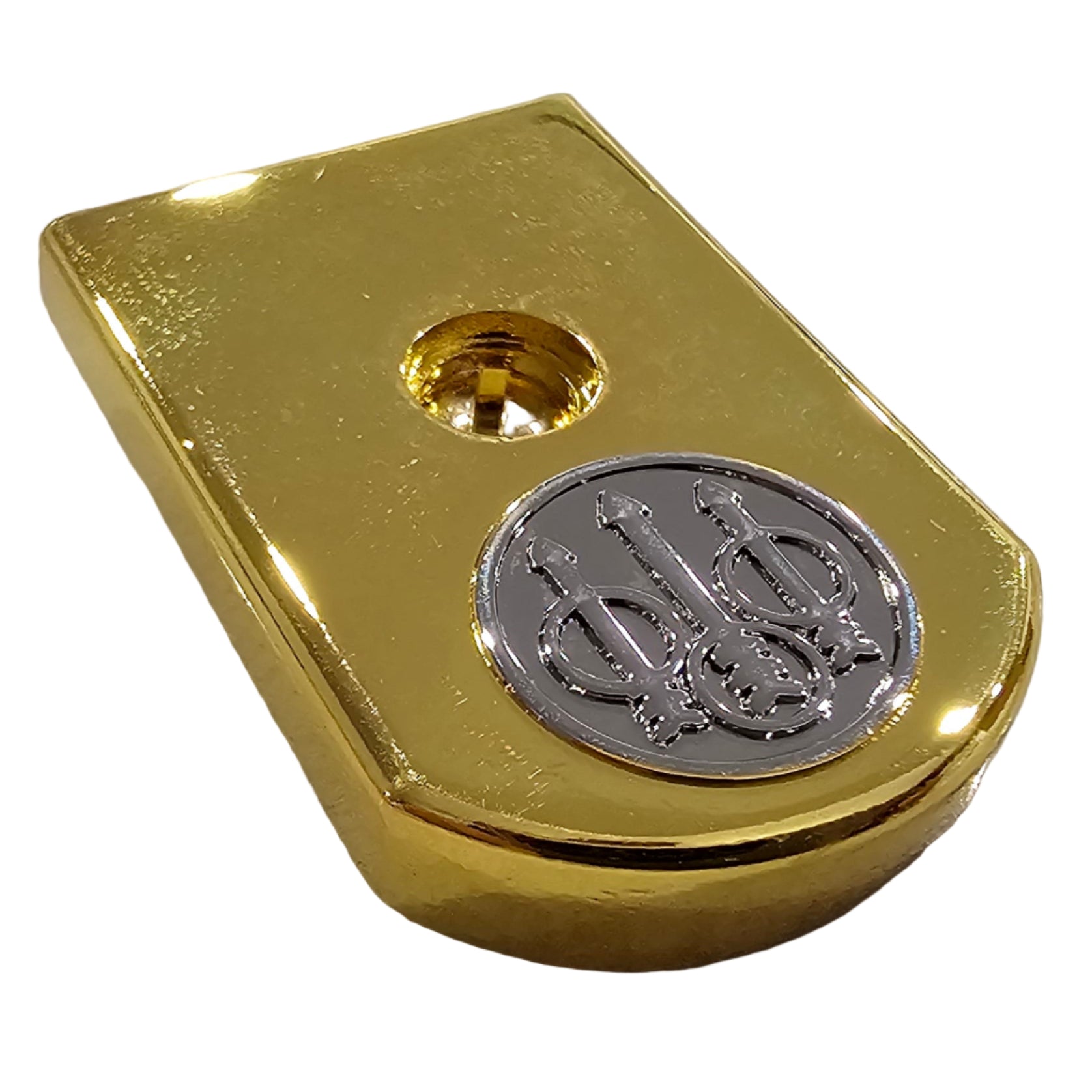 Give your magazine a luxury upgrade with this steel floor plate base pad, designed for 92/96 series magazines. Featuring a polished gold finish with a nickel accent medallion, this replacement part blends strength, reliability, and style.