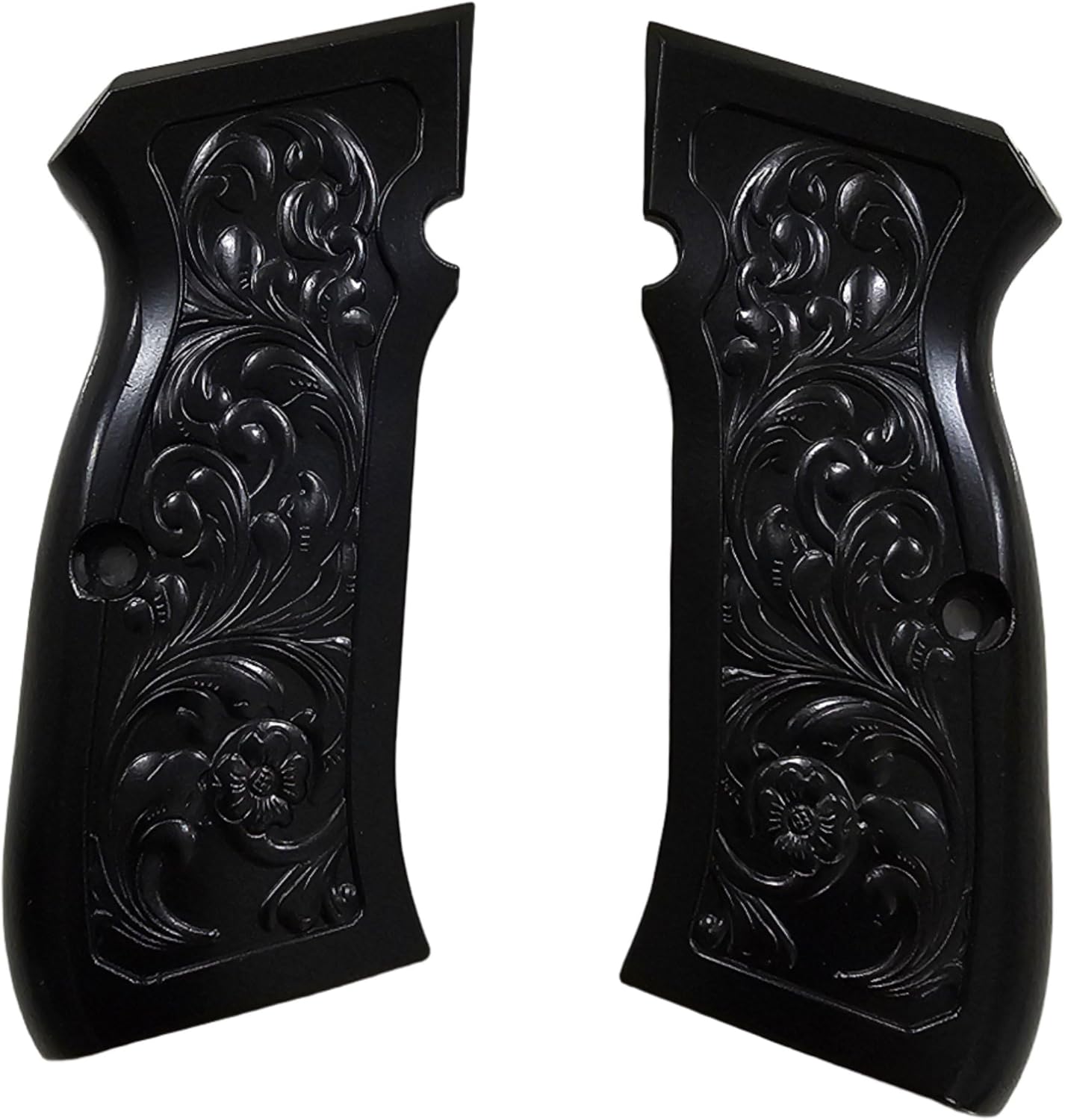 Refine your CZ-series build with these matte black metal grips, precision-engineered for a seamless fit on CZ-75, CZ-85, CZ-75B, and SP-01 full-size models. Featuring an elegant floral scroll engraving with a deep satin-black finish, these grips blend luxury detailing with a subtle, tactical aesthetic.
