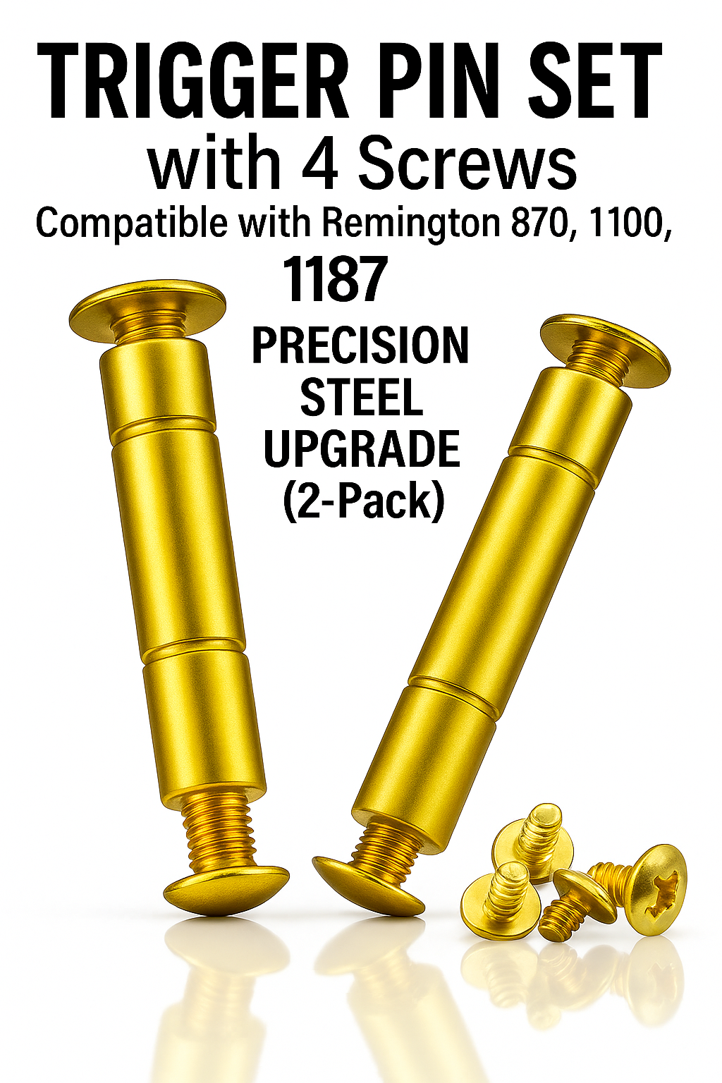 Upgrade your shotgunβs performance and aesthetics with this Premium Gold-Plated Trigger Pin Kit, designed to fit Remington 870, 1100, and 1187 models. Crafted from precision-machined steel and finished in a corrosion-resistant gold plating, this kit is a perfect blend of strength and style.