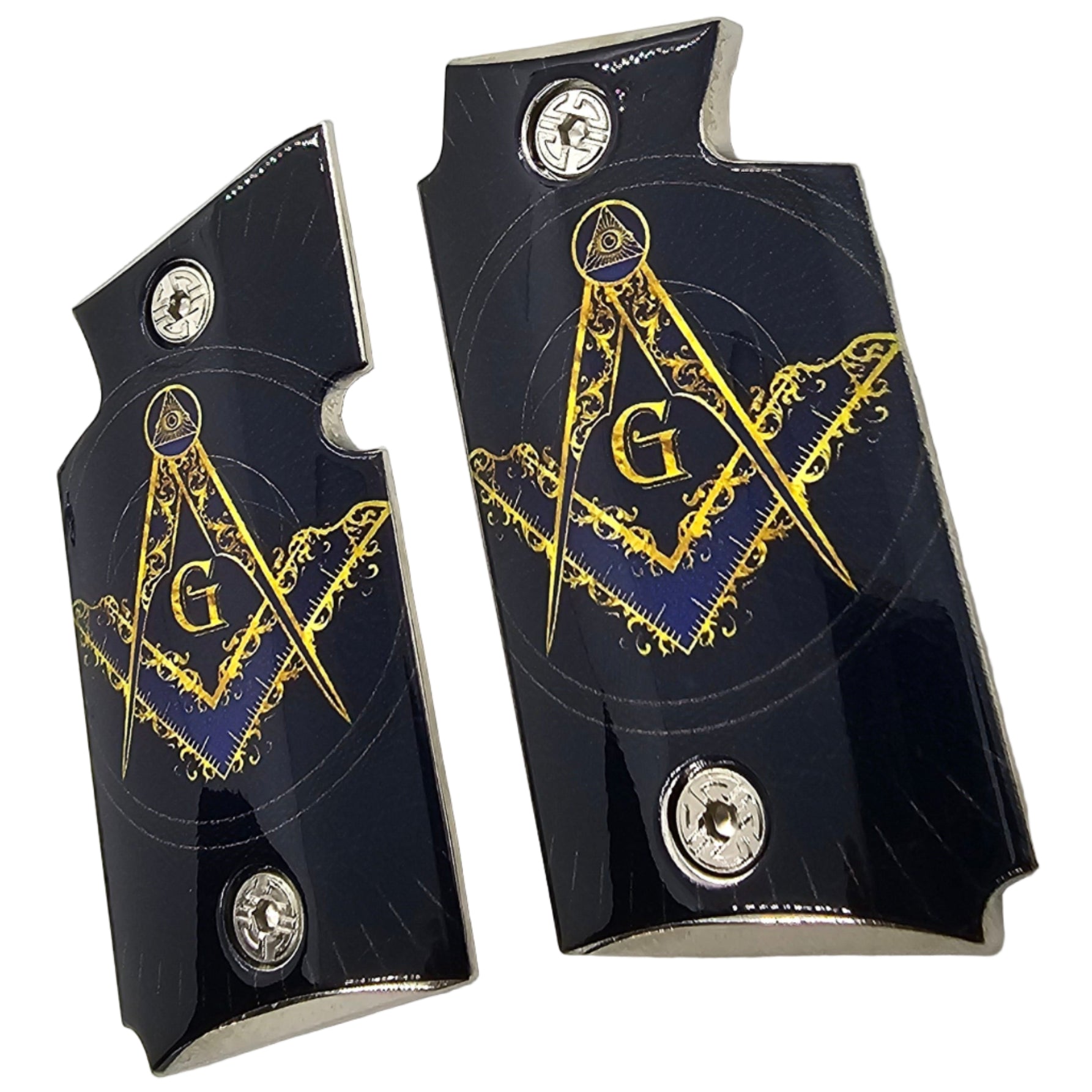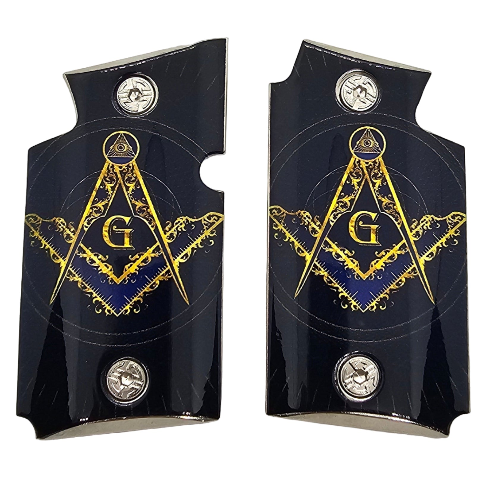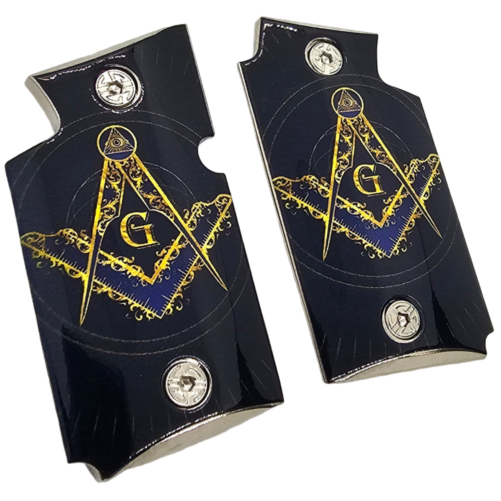 Each set is precision-made for the Sig Sauer P938 and comes with mounting screws for quick installation. Perfect for everyday carry, collectors, or as a unique gift for Masonic enthusiasts.